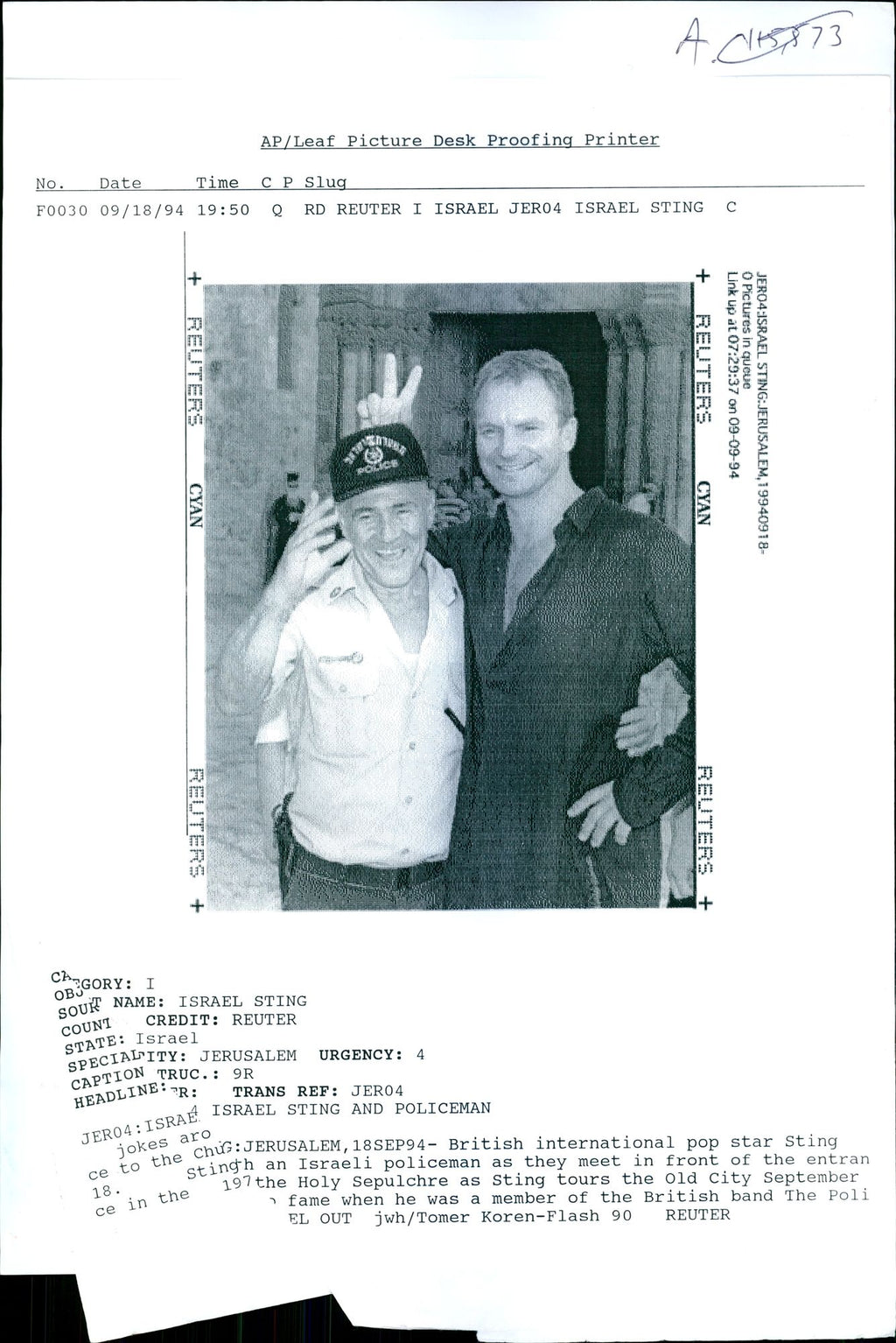 [32] IMS Vintage Photos: "Gordon Sumner Sting with Israeli Police Vintage Photograph," IMS Vintage Photos (author not specified), 2025.